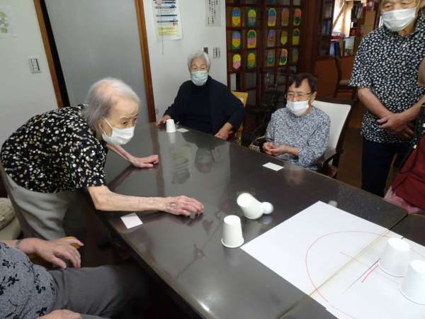 最初のゲームは「紙コップ争奪戦」ゲーム