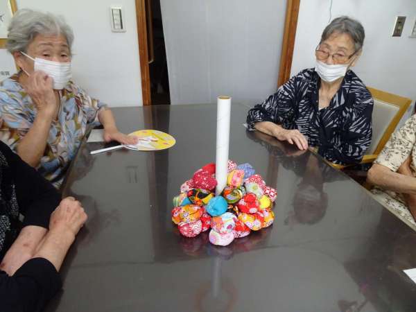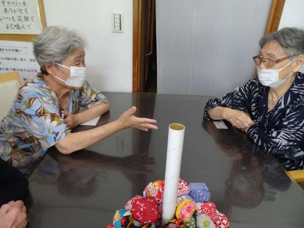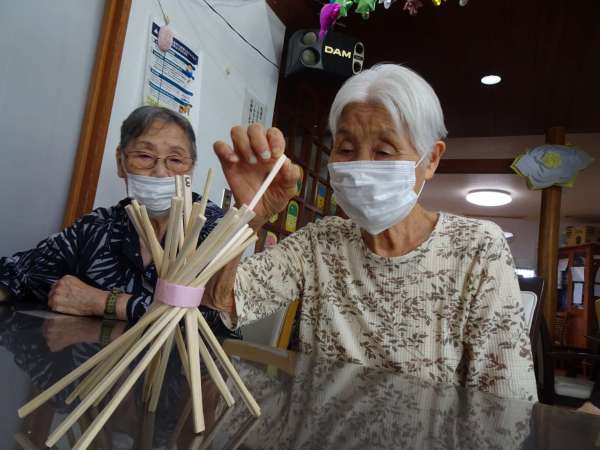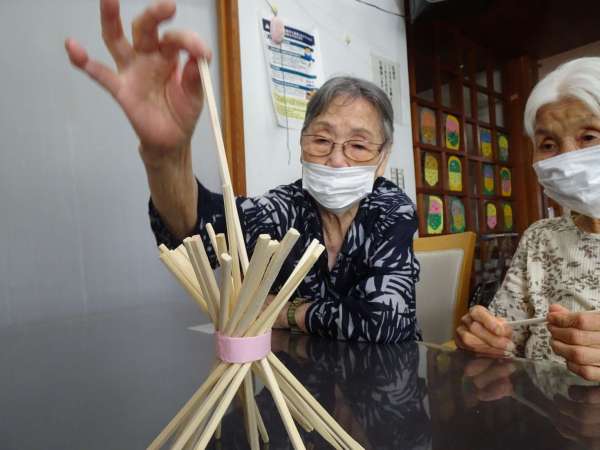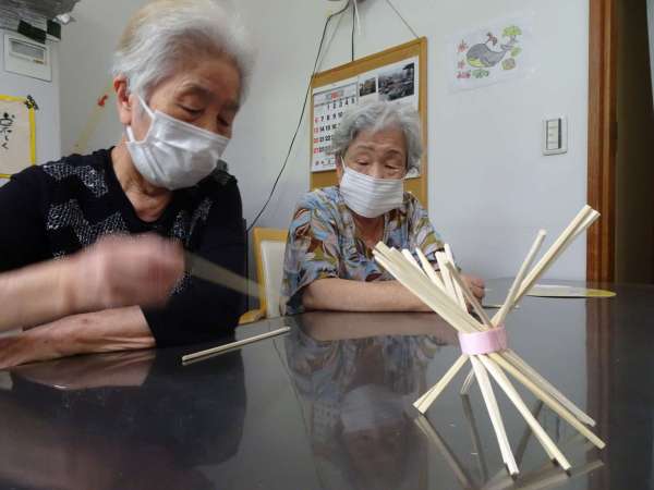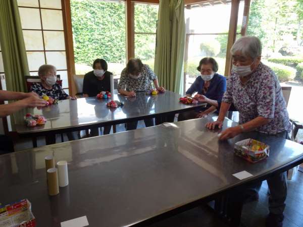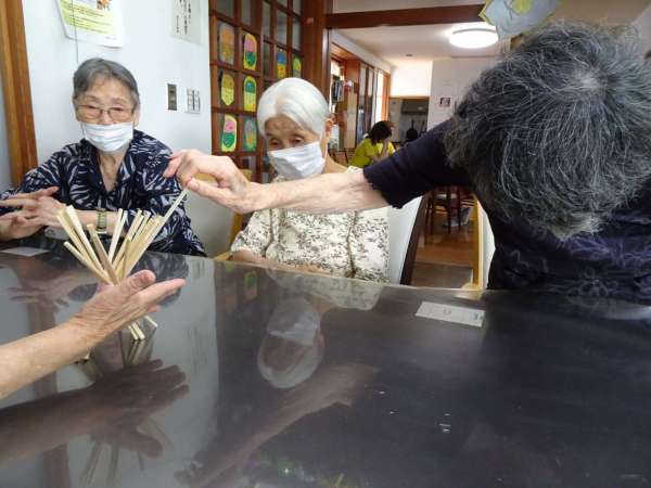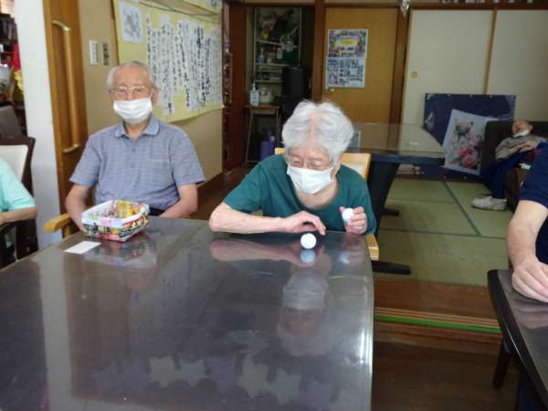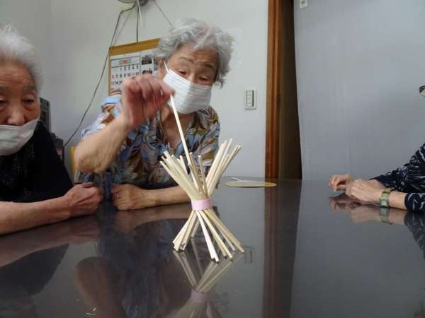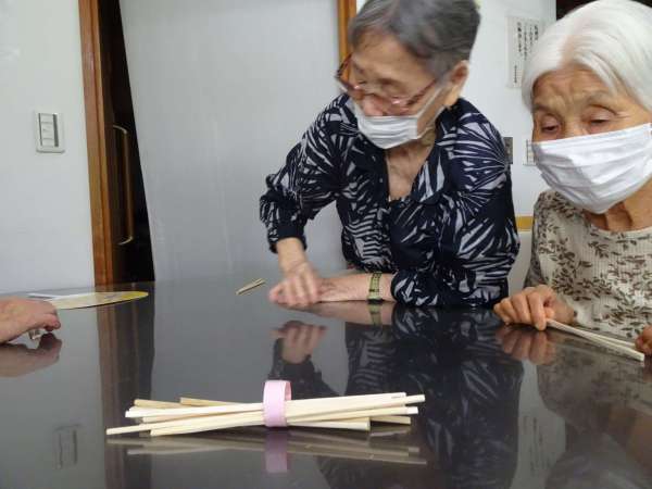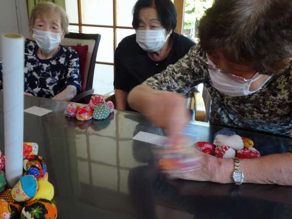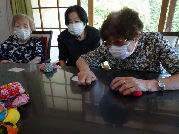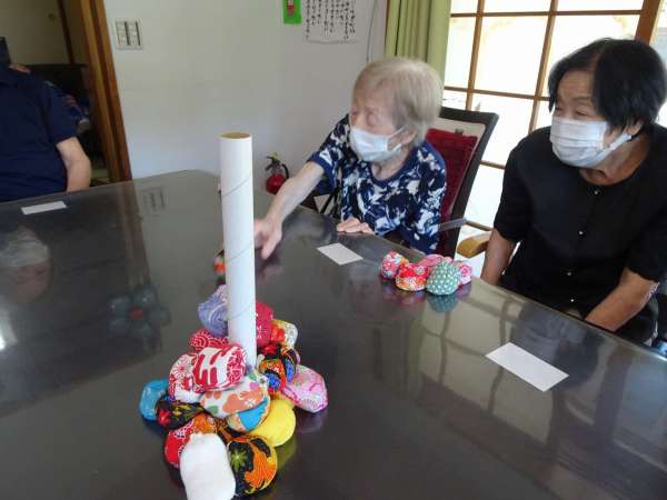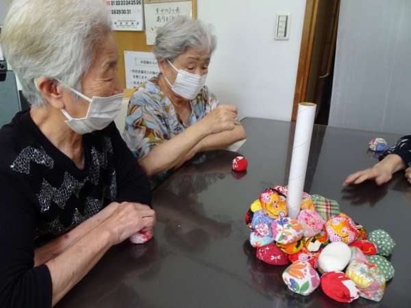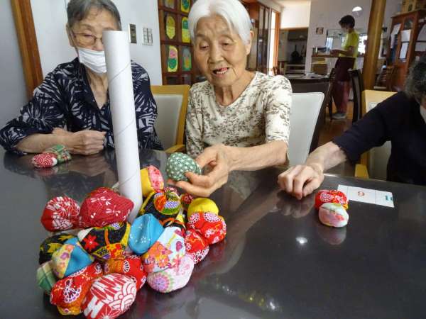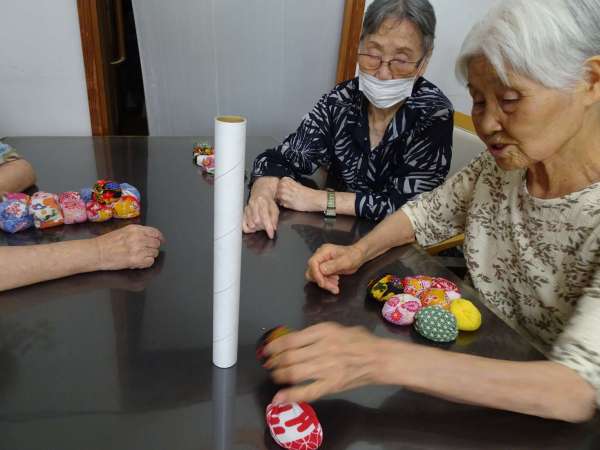 その1・・・お手玉の山に立っている棒を倒さないようにお手玉を取りましょう