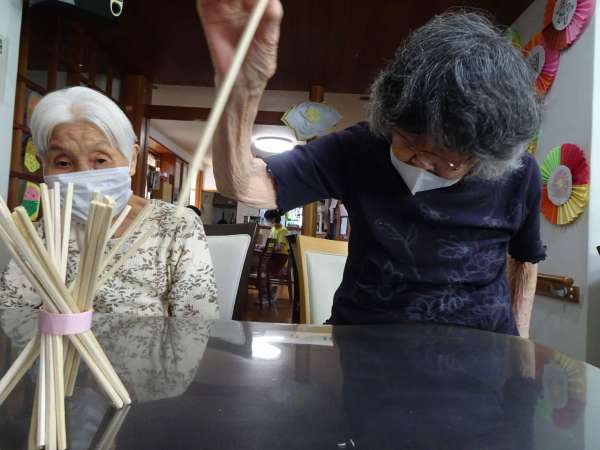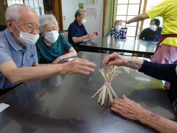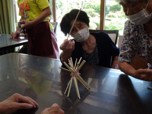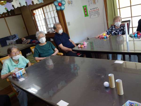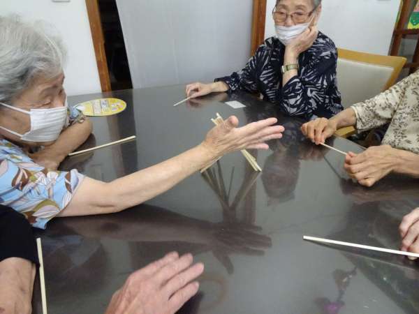 さて、今日のレクリエーションは、「棒倒し」ということで、3種のゲームを