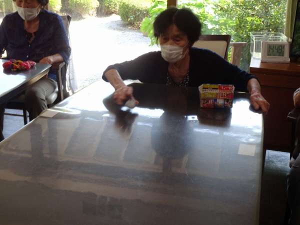 お母様方、倒したくなくて、棒をテーブルに立ててました