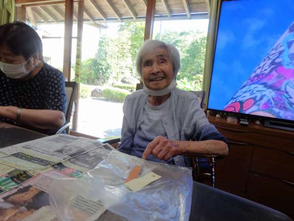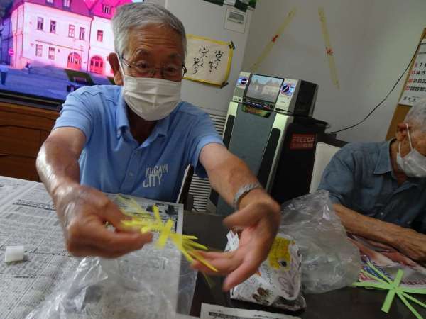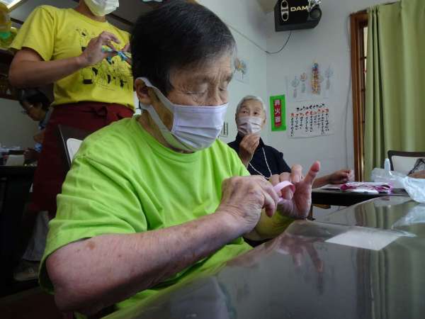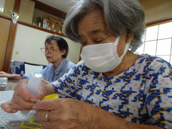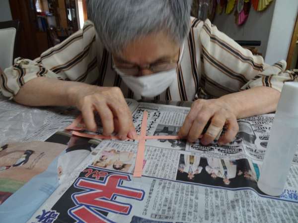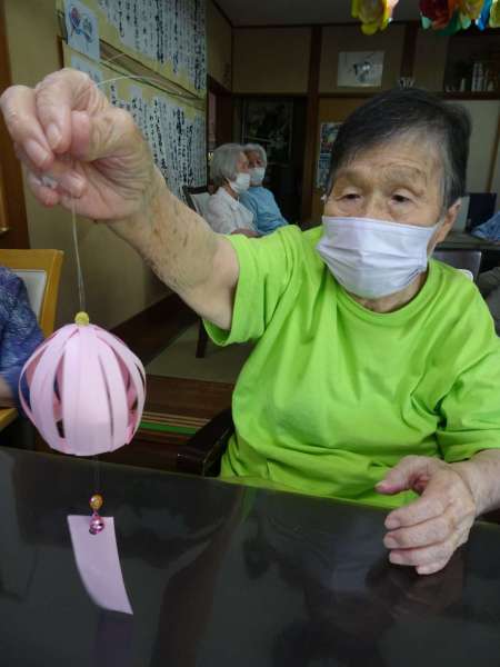 今日は、持ち帰り作品づくりということで、「風鈴」を皆さんで作りました