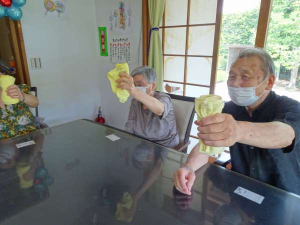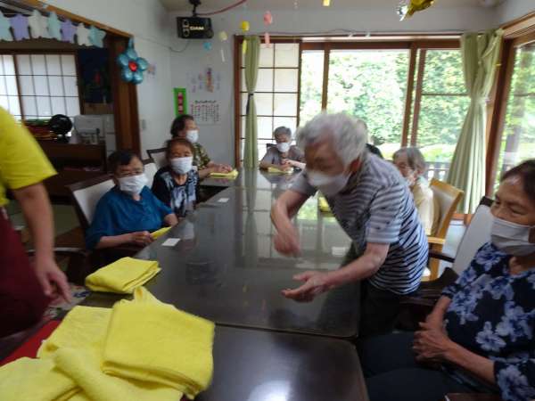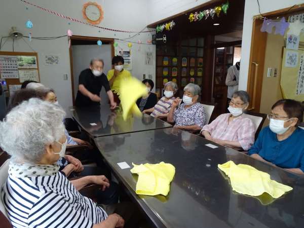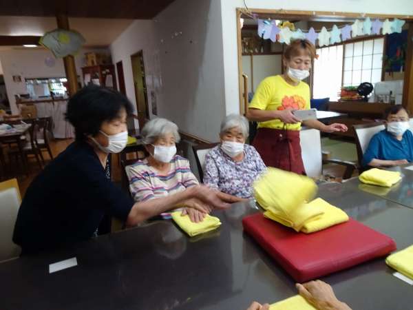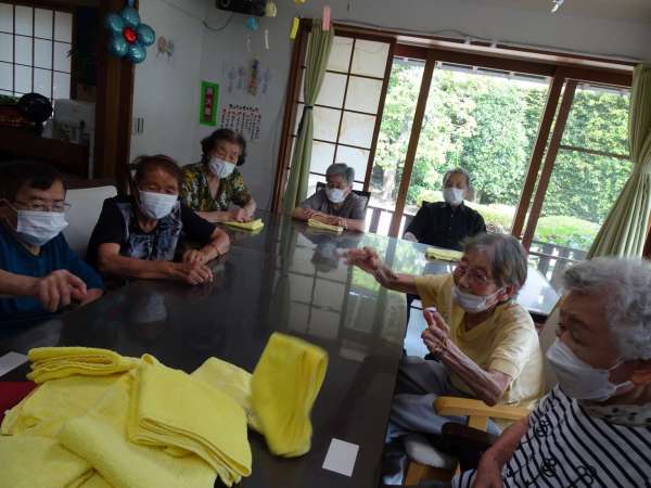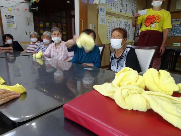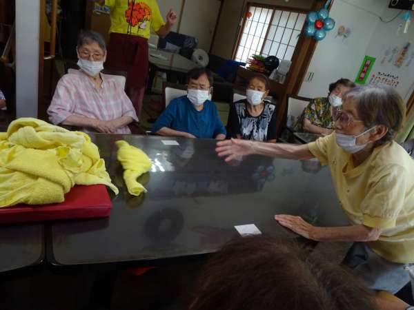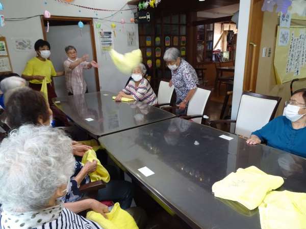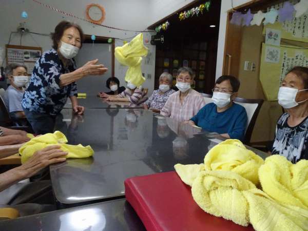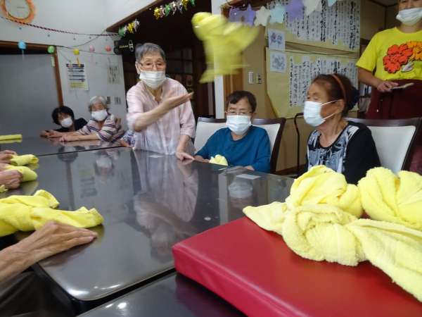 今日は、タオルを使って・体操・ゲームを致しましょうヾ(≧▽≦)ノ
