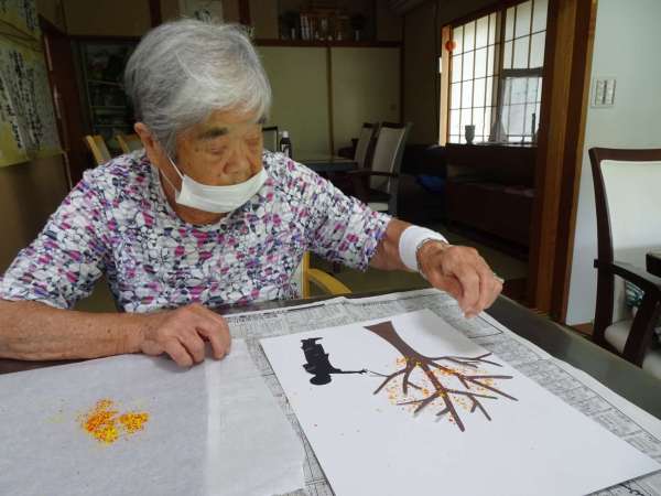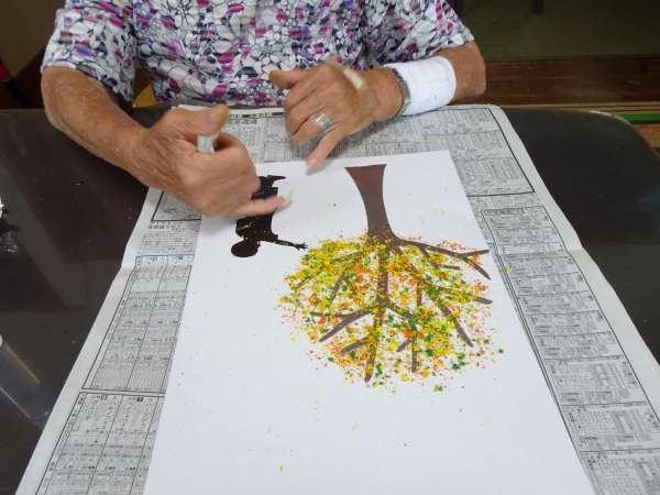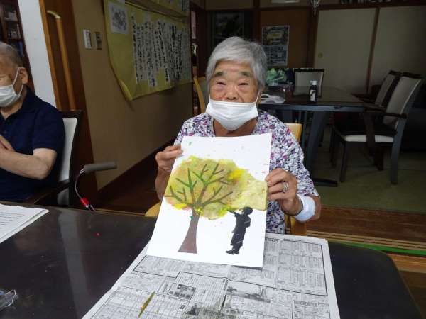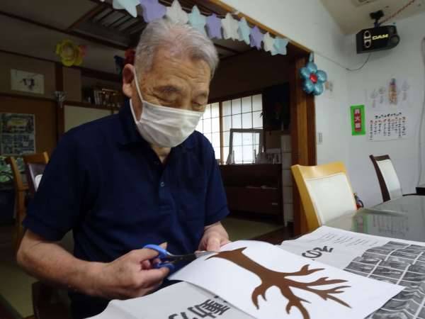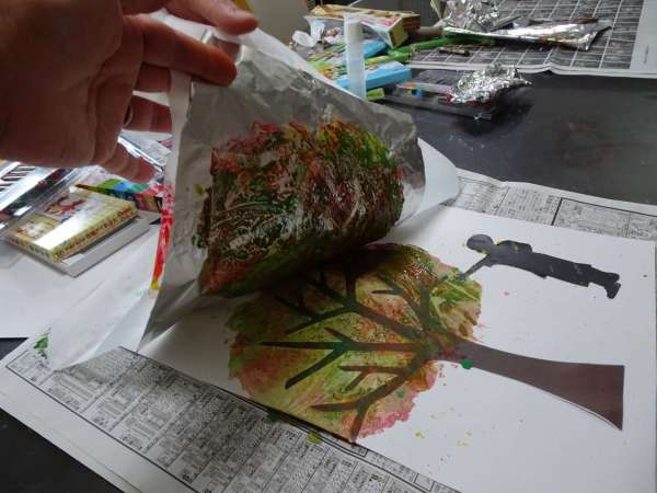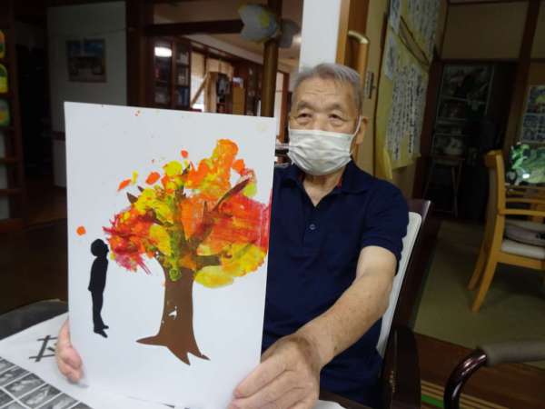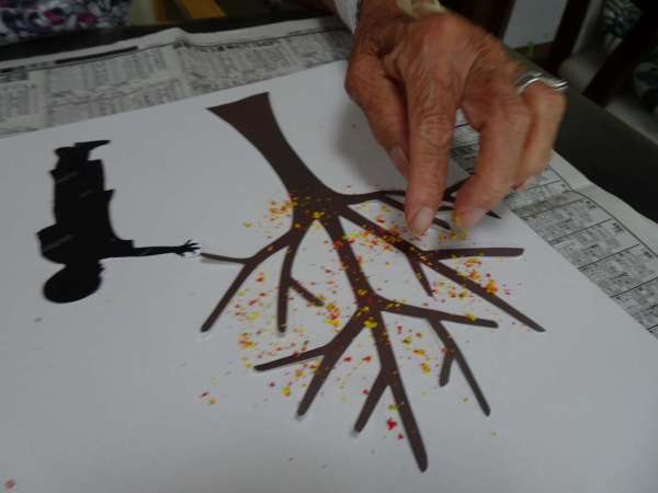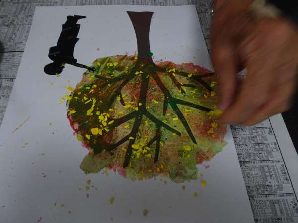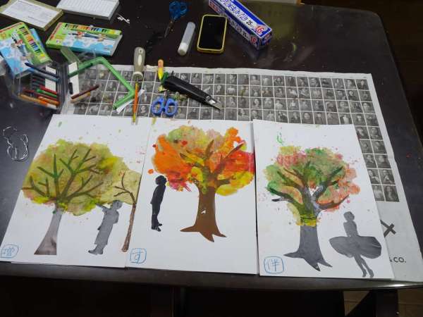 木と人の形が切れたら、白い紙に貼り付けましょう