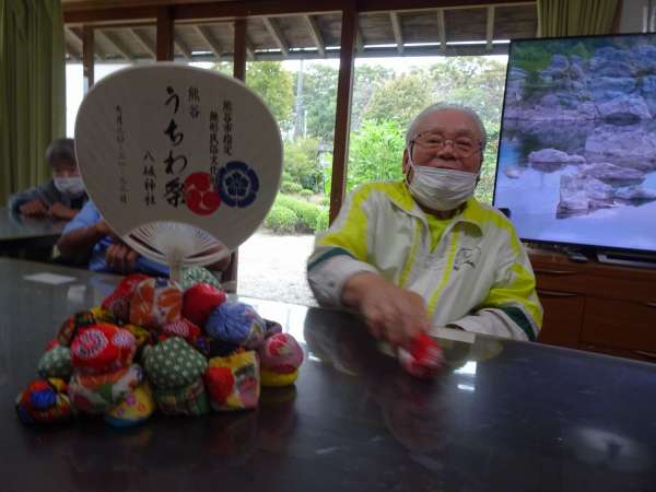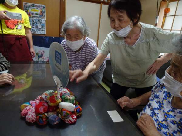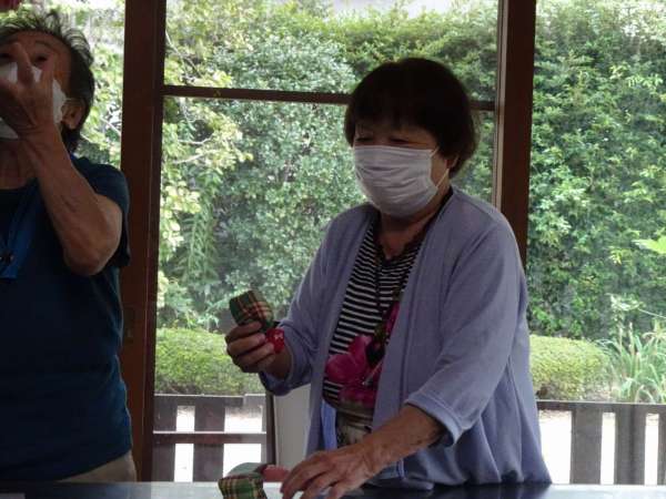 立ち上がりお手玉を投げるお母様方、あまりにも上手に投げるので見とれてしまいました