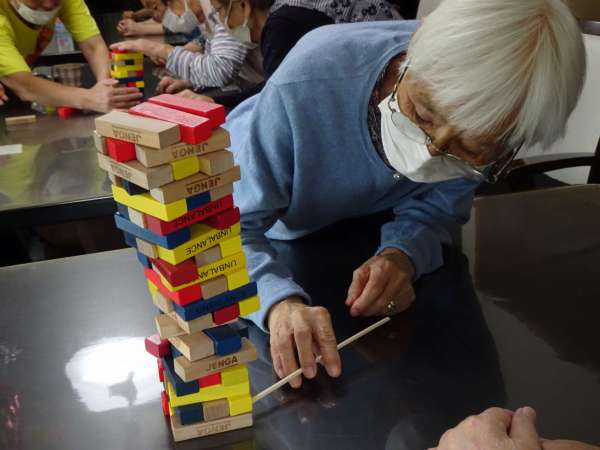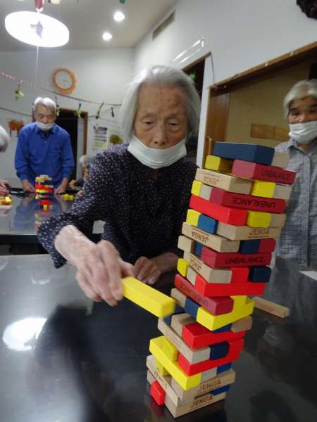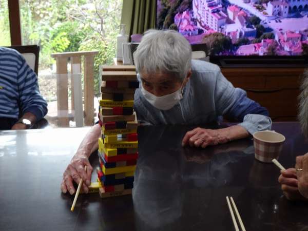 実は、いつものジェンガより、高く、バランスも悪いんです