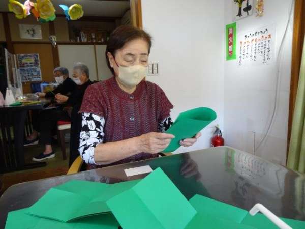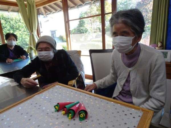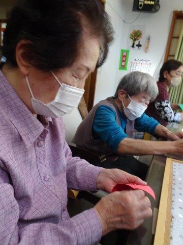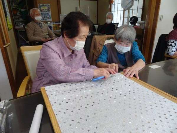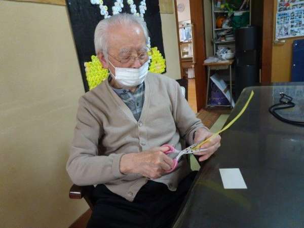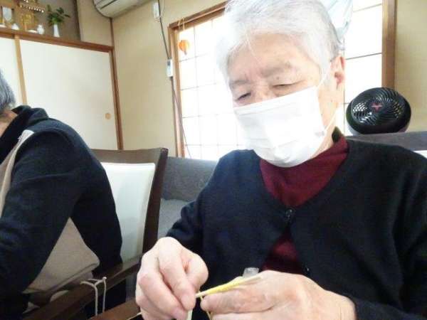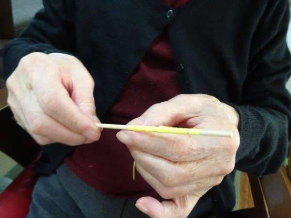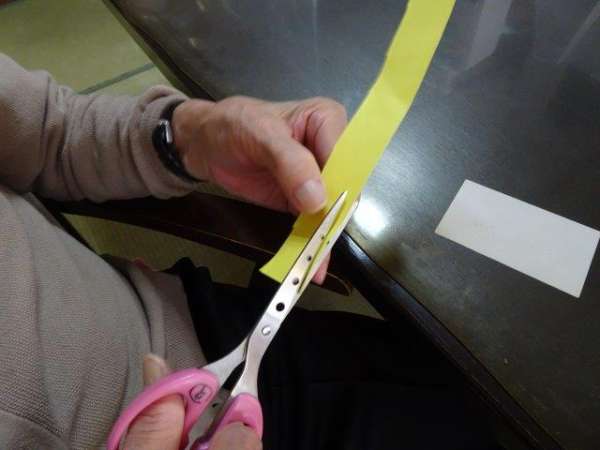 お父様が切った細い画用紙をこちらのお母様がクルクルクルクル巻き付けてくれています