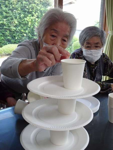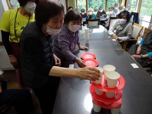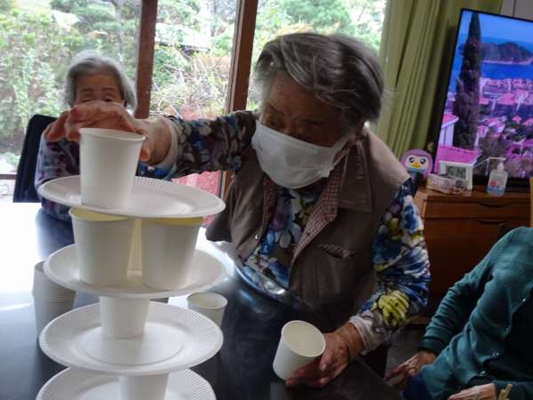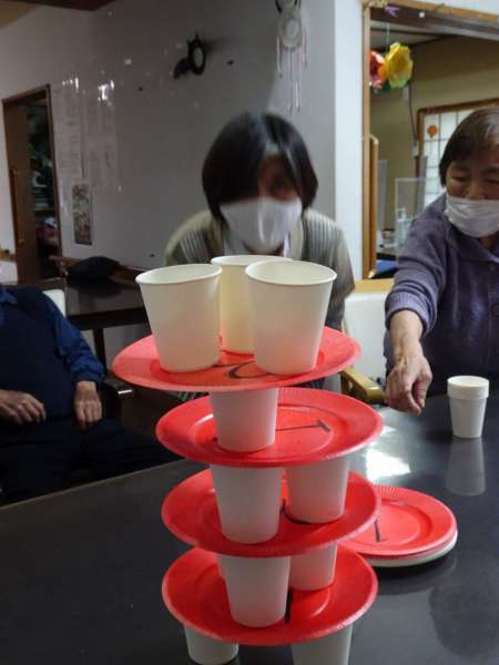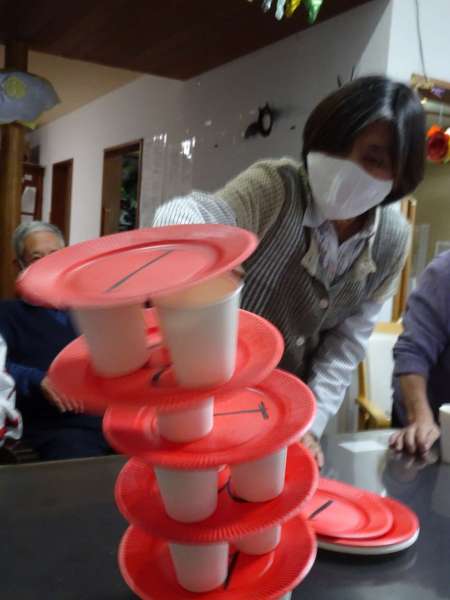 くじをして、番号が書いてあるのでその数が土台となる紙コップの本数になります