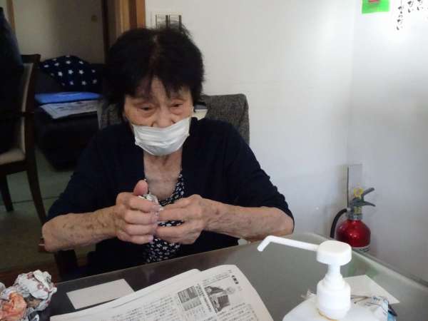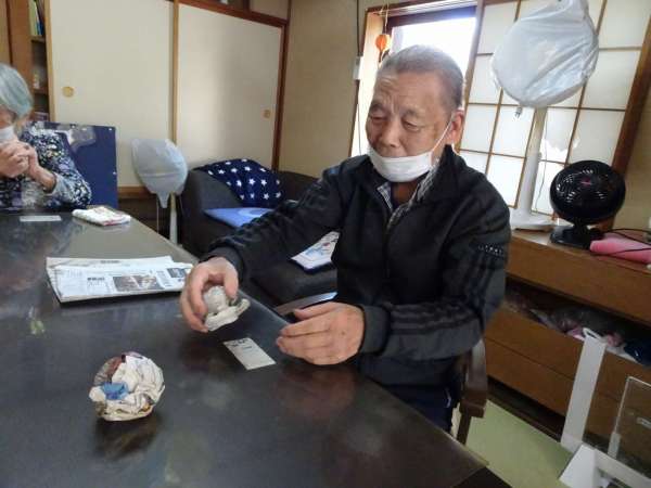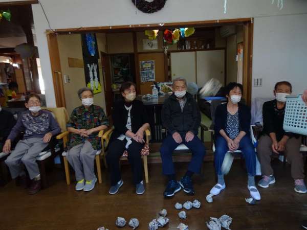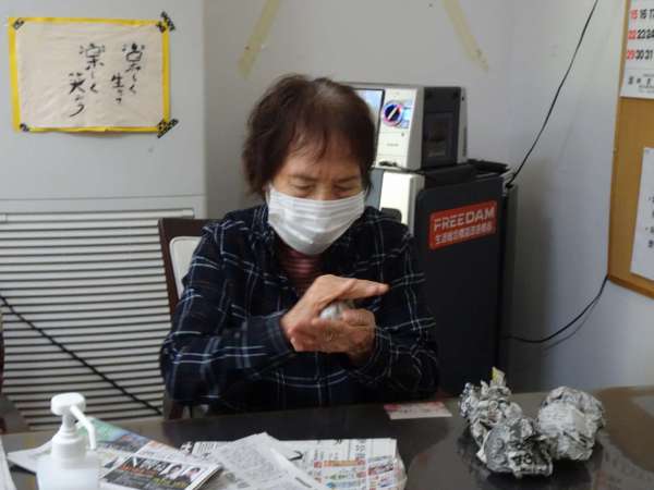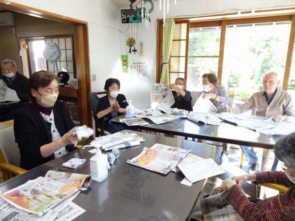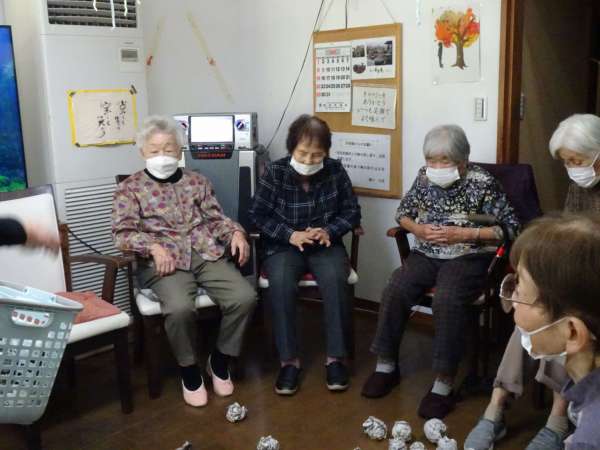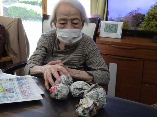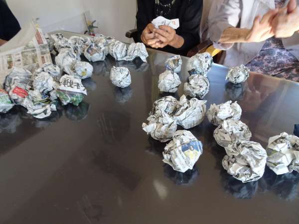 新聞紙を丸めて玉づくりをしました