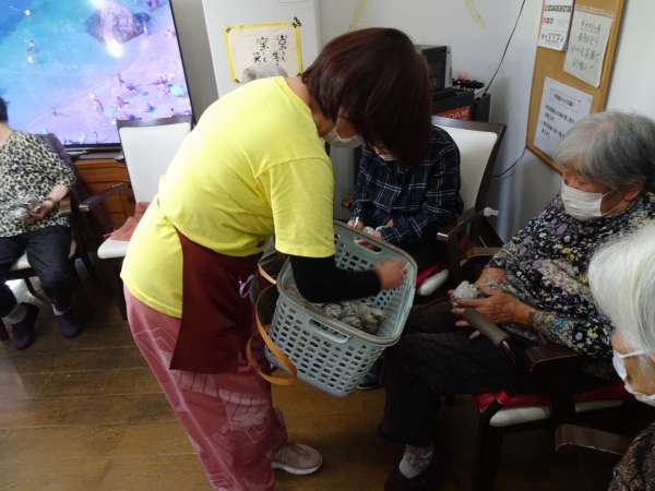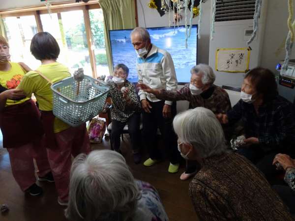 次の玉入れの、玉を配ります