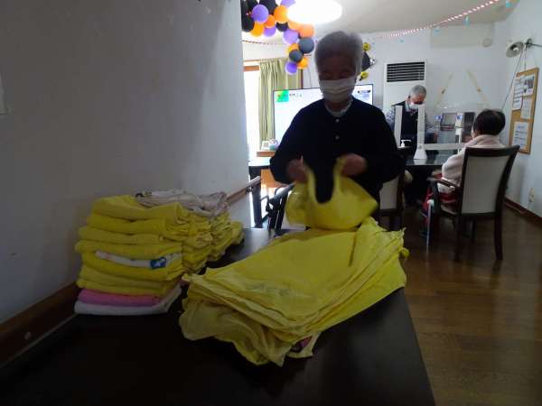 朝、ご来庵後うがい手洗いの後の最初の光景が、タオルたたみ(#^^#)