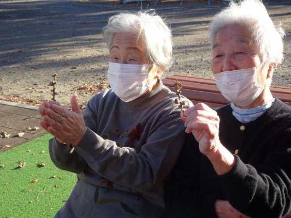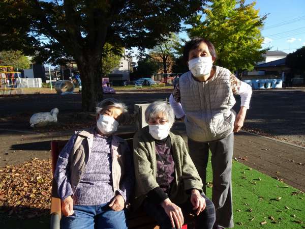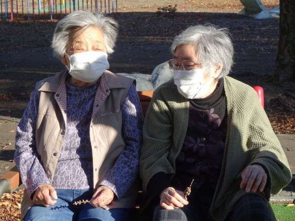 日向ぼっこしながら、景色の話や近所の子供が遊ぶ姿を見て、のんびり