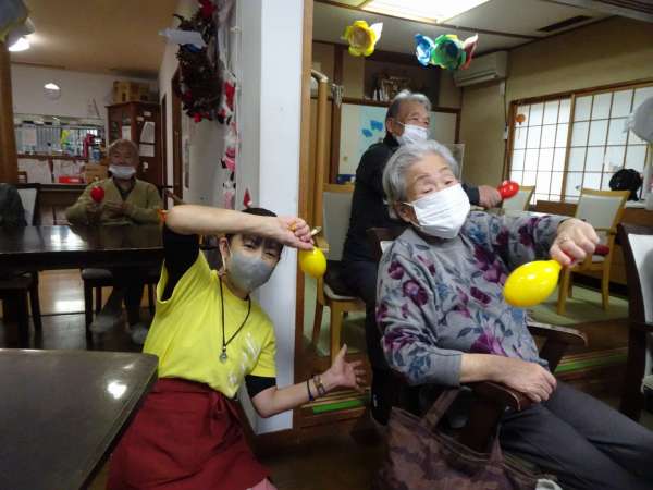 また、じっとしてしまいがちな歌謡ショーの中で運動することも忘れません