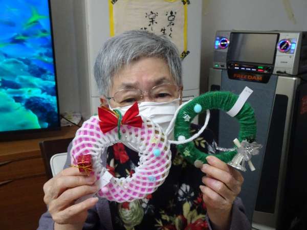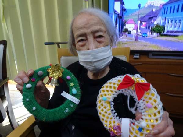 作り始めて三週目となってしまいましたが、クリスマスらしい可愛いリースが二つずつ完成いたしました(´▽`*)
