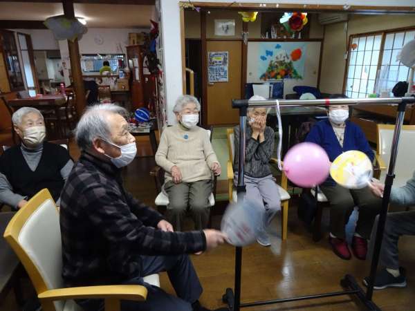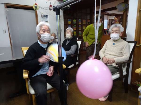 パイプハンガーにぶら下げた風船を仰ぎまくろうゲーム