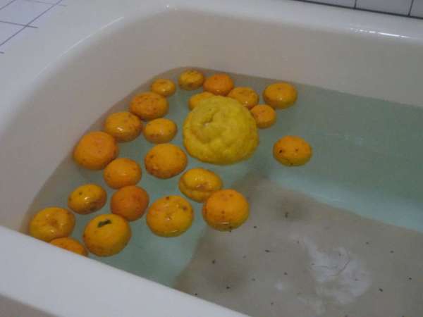 ゆずたっぷりのお風呂に入って体を温めましょう