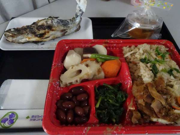 にじますからとったお出汁で炊き込んだ炊き込みご飯に優しい味付けの煮物