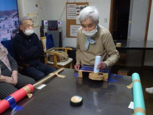 お父様とスタッフがひとゲームして、本日のレクリエーションは、終了ですわーい (嬉しい顔)