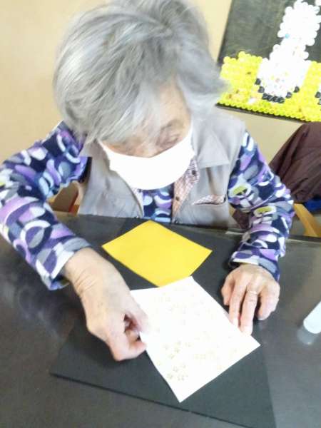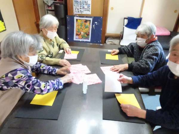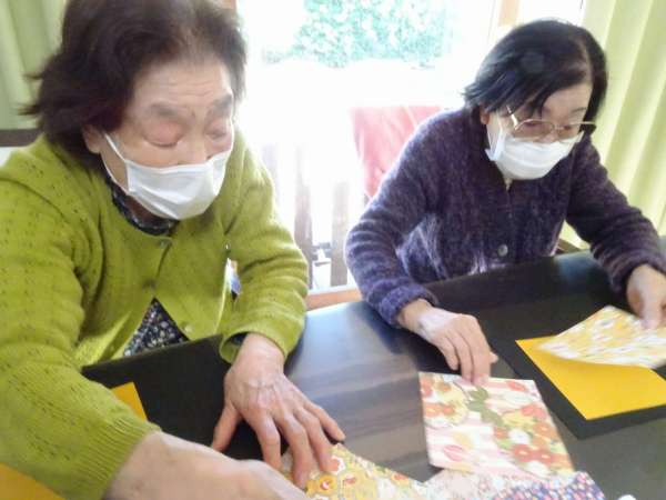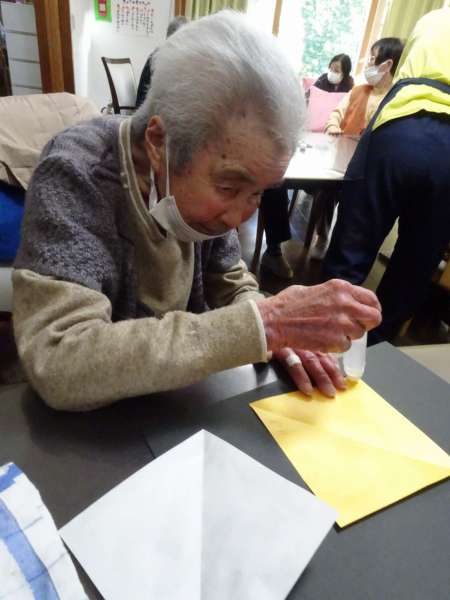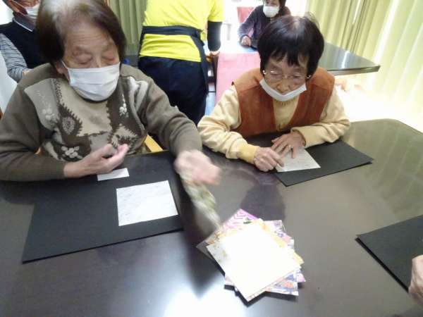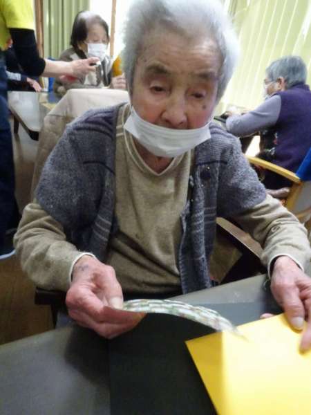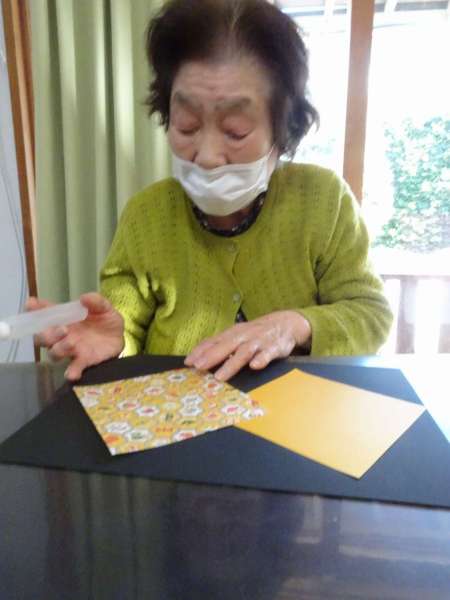 折り紙の配色を選んでいるのですねうれしい顔手 (パー)