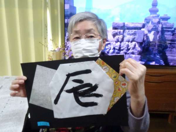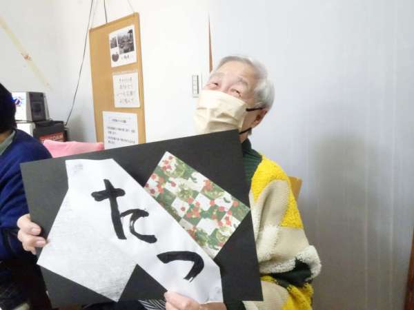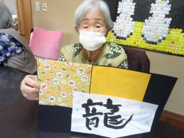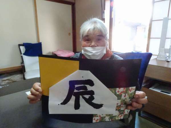 お母様は・・・辰の絵にチャレンジですね指でOK