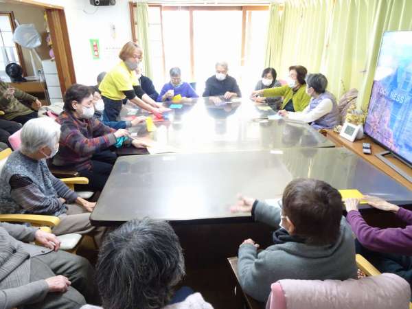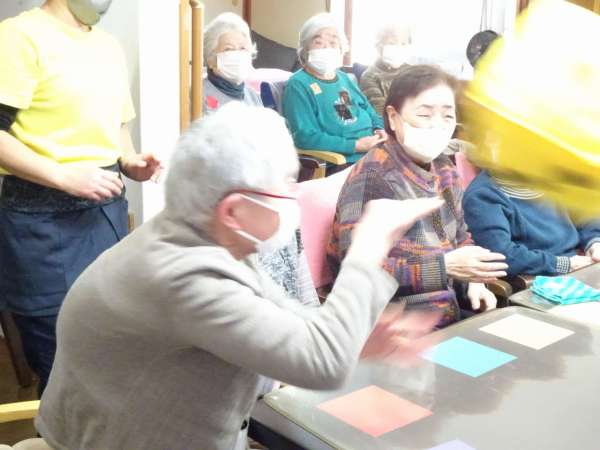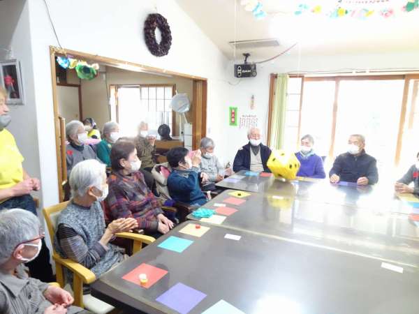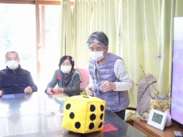 紫色紙に止まったチームには門松と写真撮影となっていたのでした