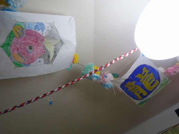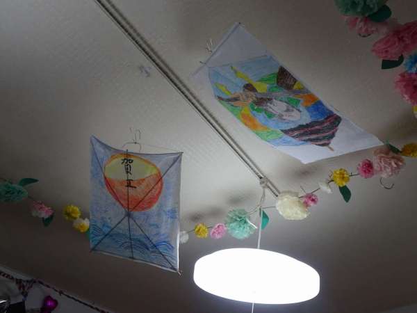 年末に作った凧・・・やっとホールに飾らせていただきました
