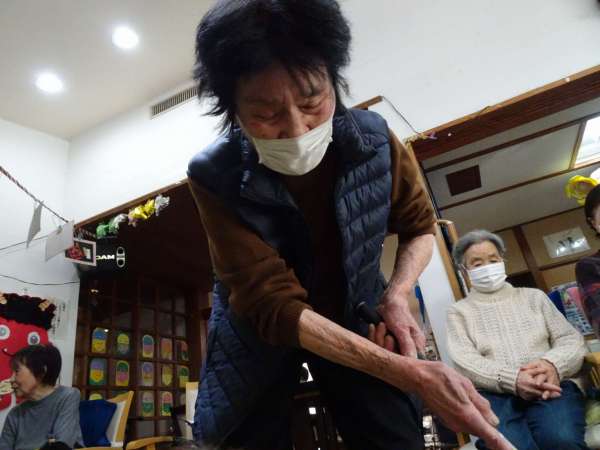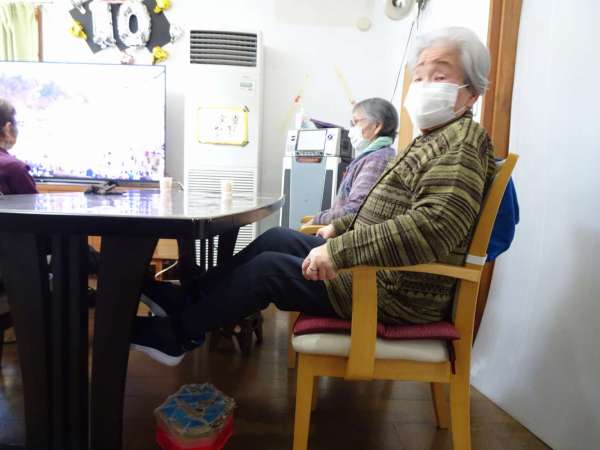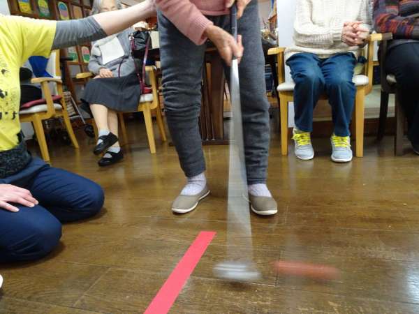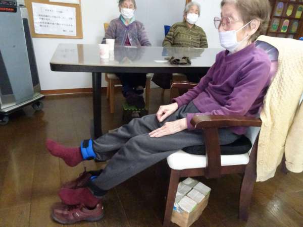 足に付けているのは、その方に合わせて500グラム~1キロほどの重りを付け、負荷をかけて体操を行います