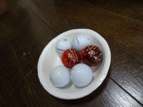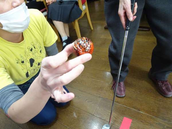 10球パットしますが、たこ焼きボールが穴に入った場合は得点が倍になる