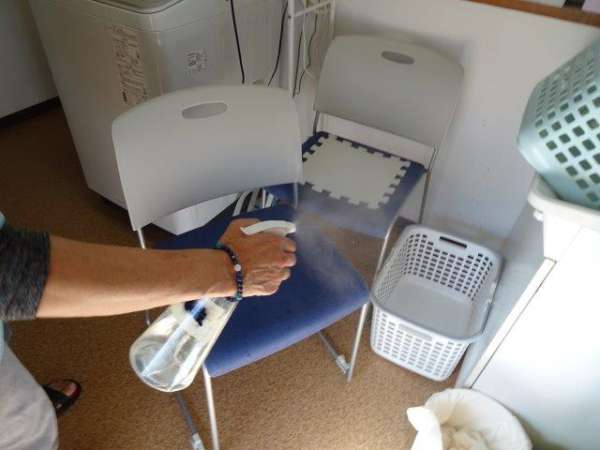 『洗ったカゴや使用した椅子は、消毒をしてから外干しします