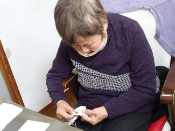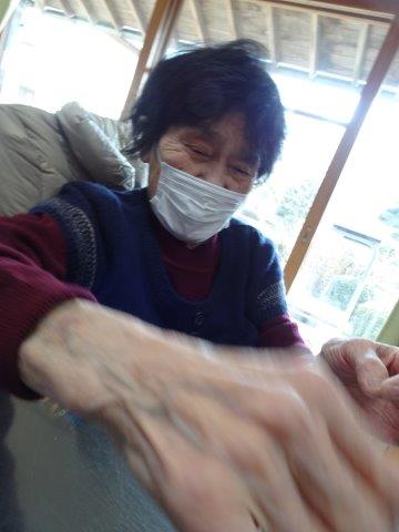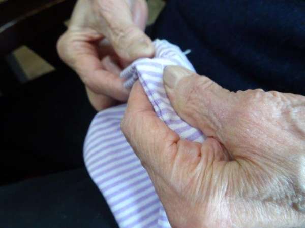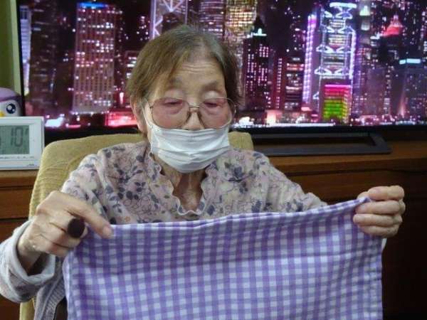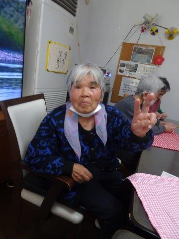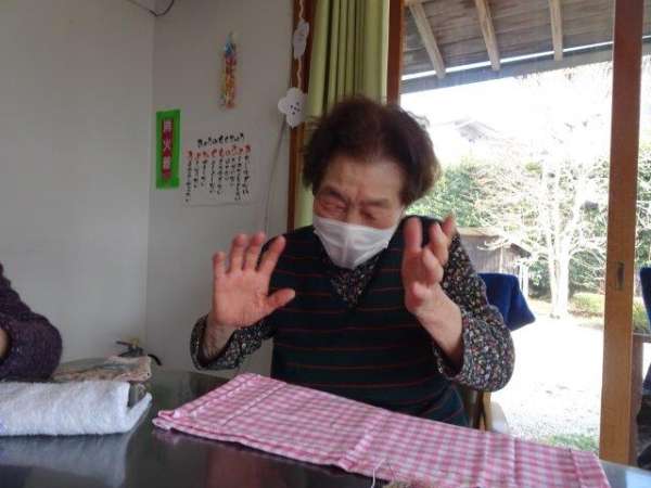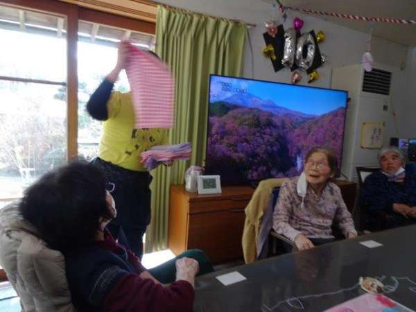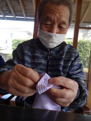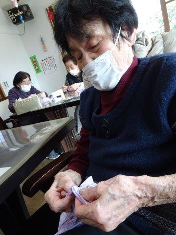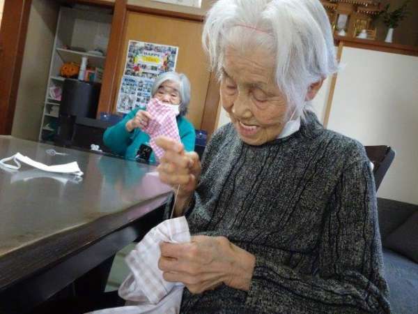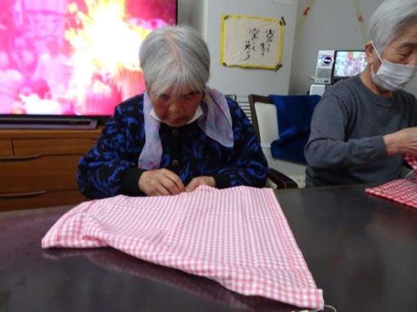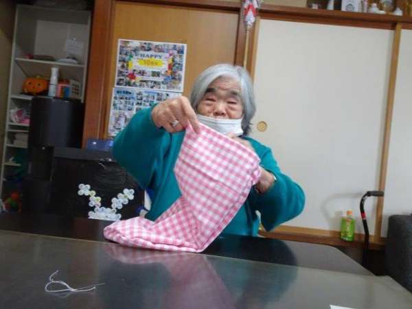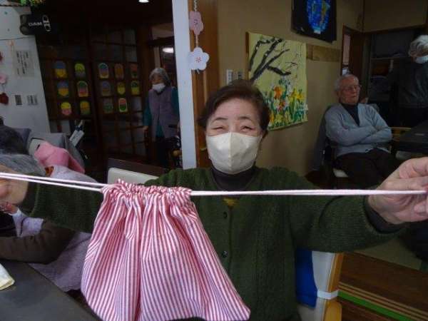 今日のレクリエーションは、お父様お母様にお裁縫をしていただきまーすわーい (嬉しい顔)