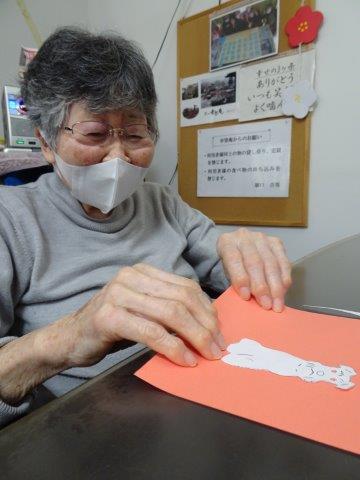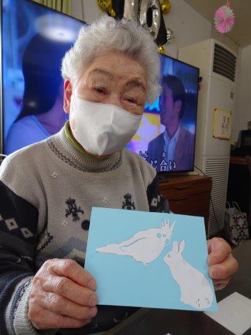 お母様、もう一つ切り抜く所を空けて🐰「うさぎ」お次は何を切り抜きましょう