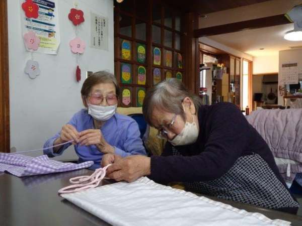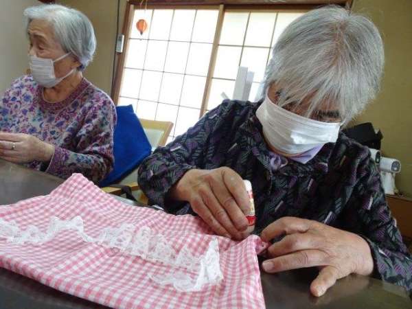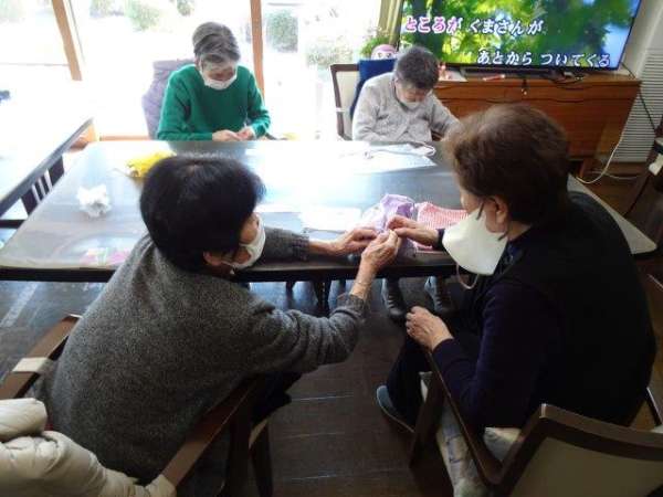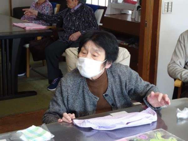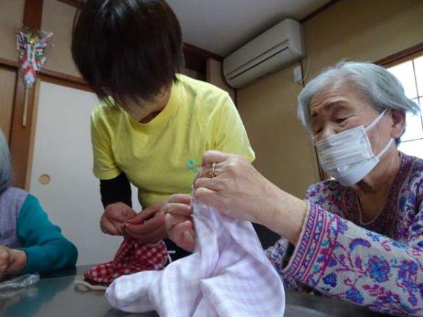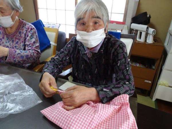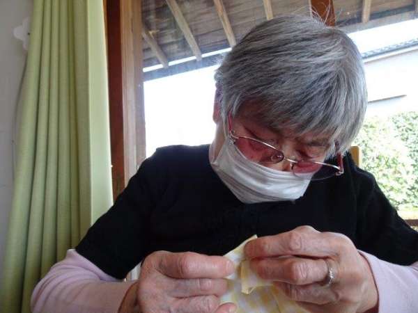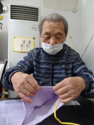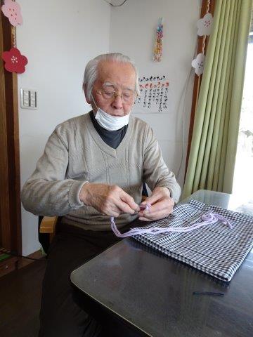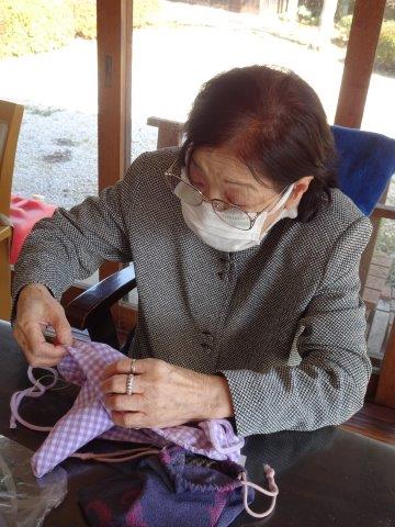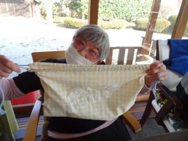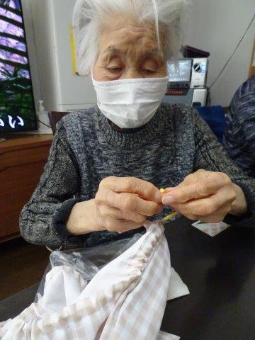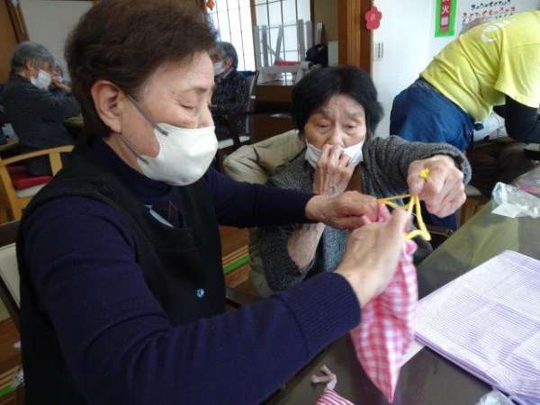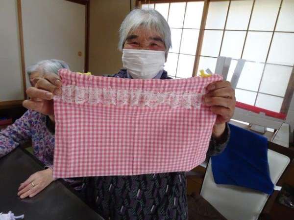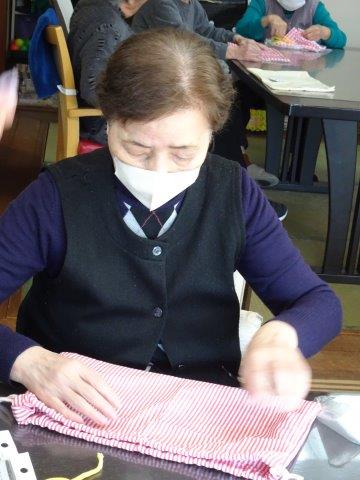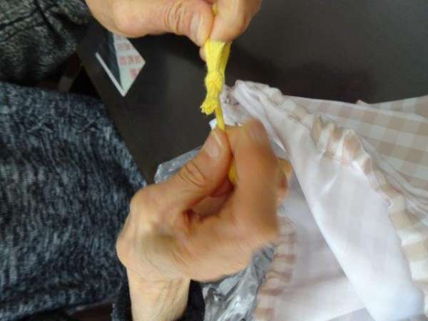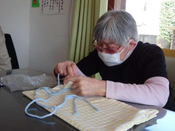 先週金曜日に作り始めた巾着の仕上げを、皆様としたいと思います