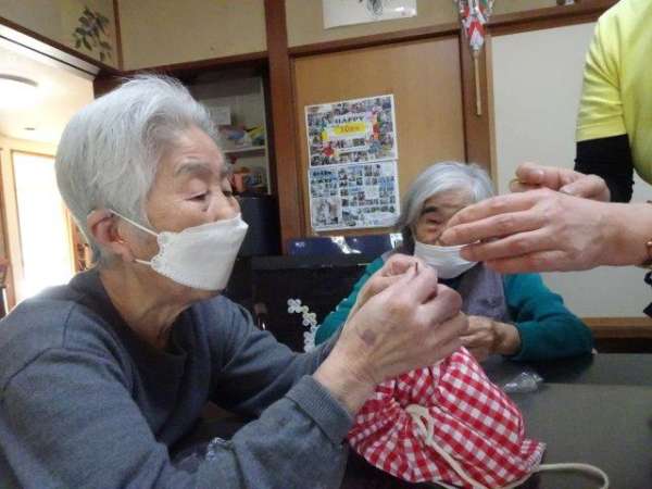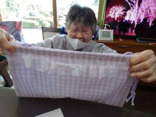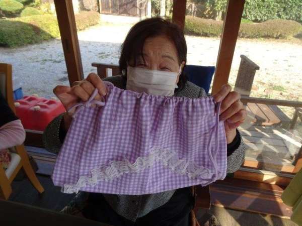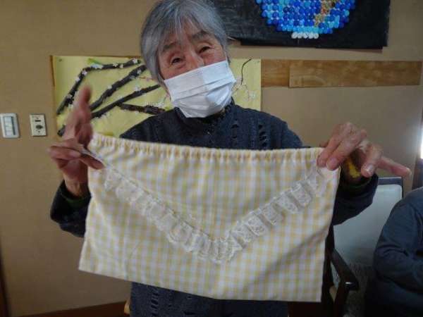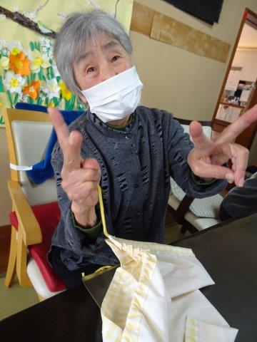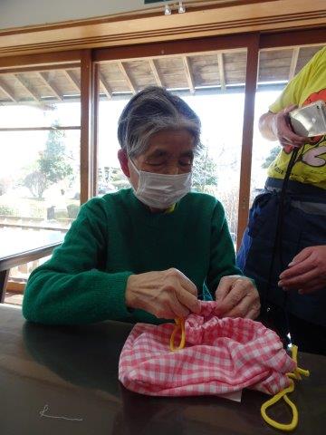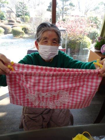 可愛く出来た巾着に、お父様お母様は、何を入れるのでしょうね