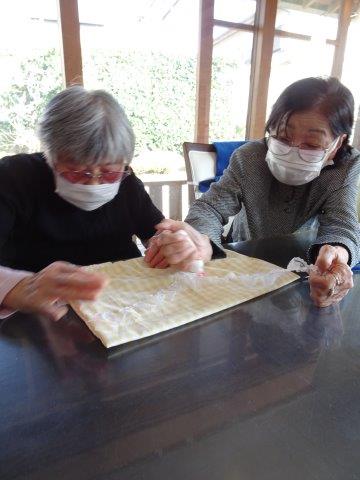 前回、紐通しまで仕上げたお母様は、少し補強をされました。