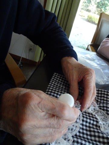 お母様の手、近くにいらっしゃる方の紐通しを、お手伝いして下さった、神の手です