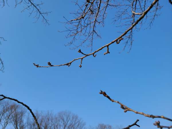 朝から暖かかった今日、望みの幸望庵前の桜の状況はというと