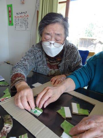 とても細かくて難しそうですが、初めのお母様がキャスターをしていた枠にはめ込んでいくんですね