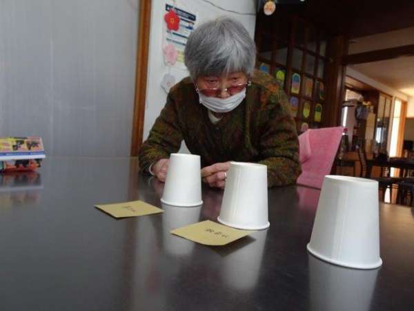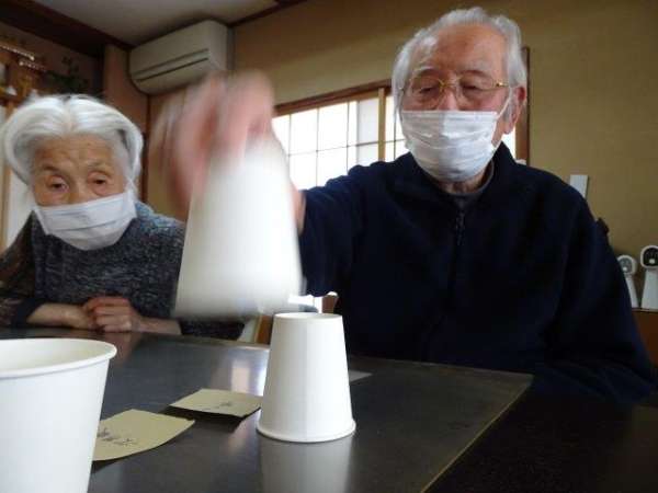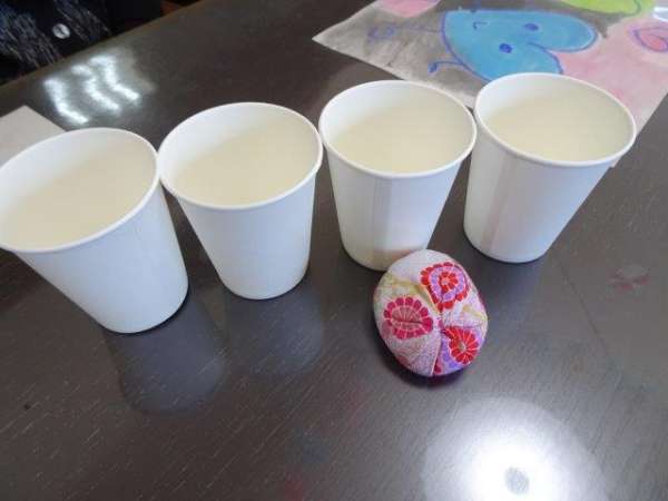 紙コップの中にお手玉を仕込んでシャッフル