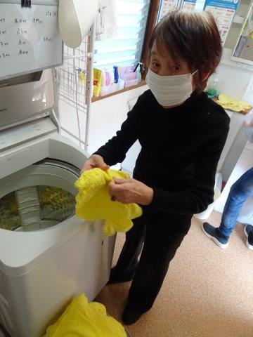 今日は午後になってお天気がいいので、スタッフが洗濯物を干していたら、お母さんがお手伝いに来てくださいました