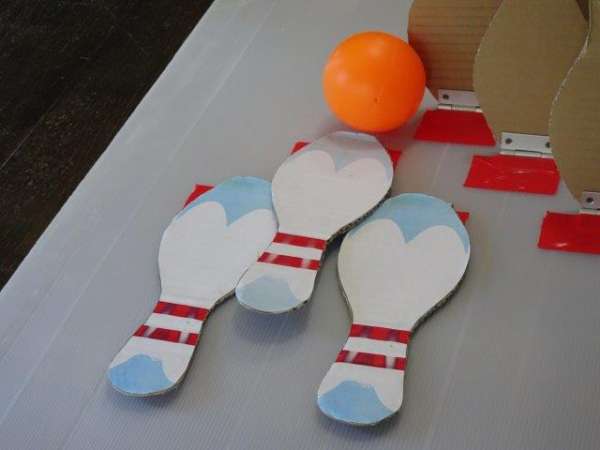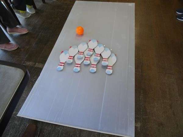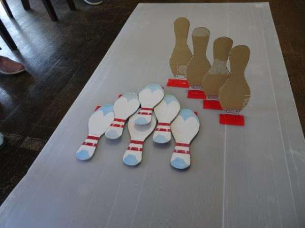 今回のボーリングのピン真ん中な当たると、綺麗に倒れてくれるはず