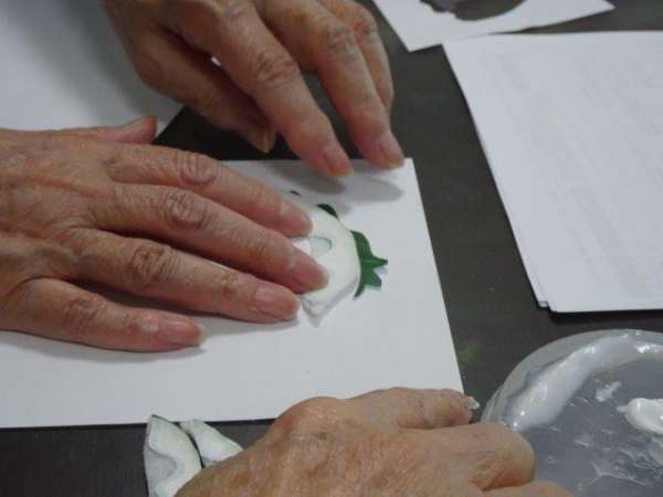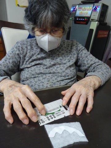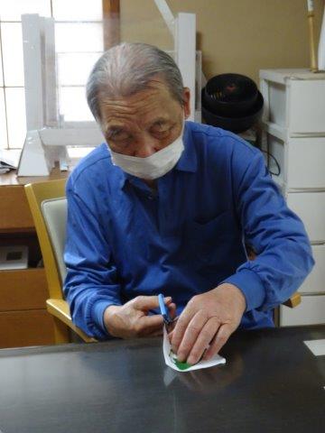 まずは、台紙になる柏餅をカットして頂いておりますが、ギザギザのところまで綺麗に切って下さいました