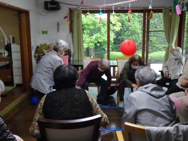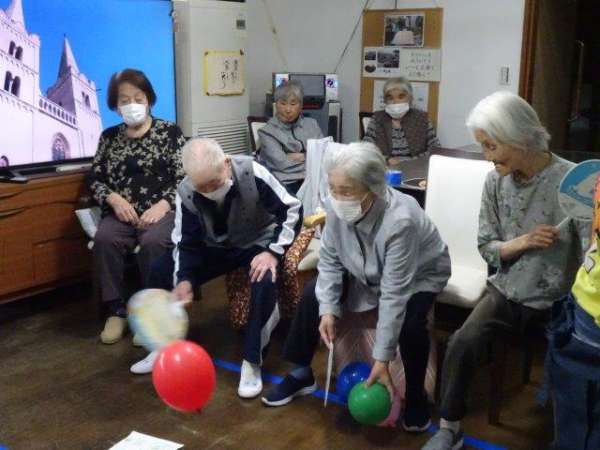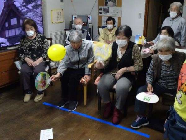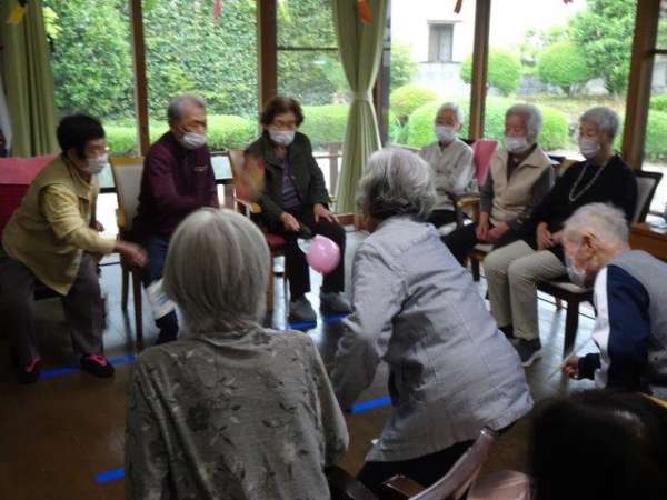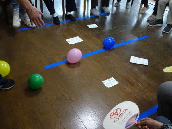 最後の方になると、いつの間にか周りの方も参加して風船を上手に足で上げシュート