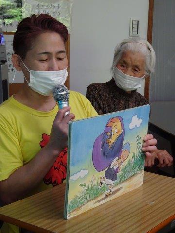 今日は、知らない昔ばなしですが楽しそうに聞いています