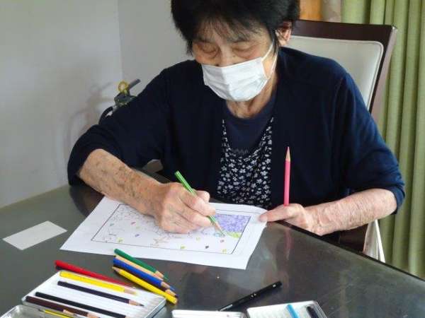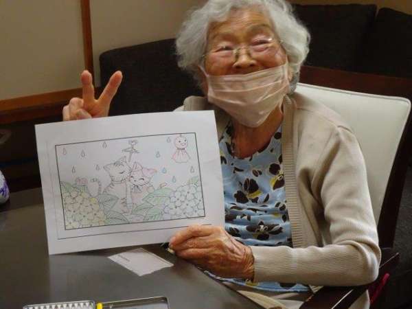 今日は、お父様お母様に、6月に因んだ塗り絵をしていただきましょう