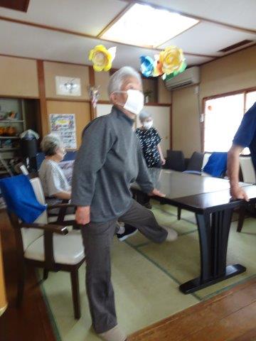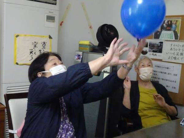 ビデオを見ての風船リズム体操、風船を使って初めてしましたね
