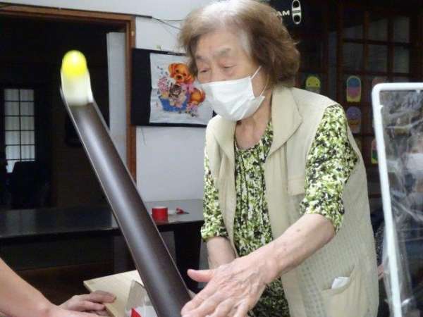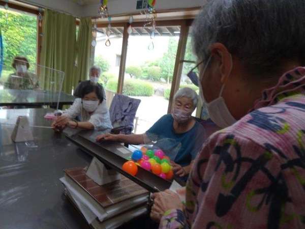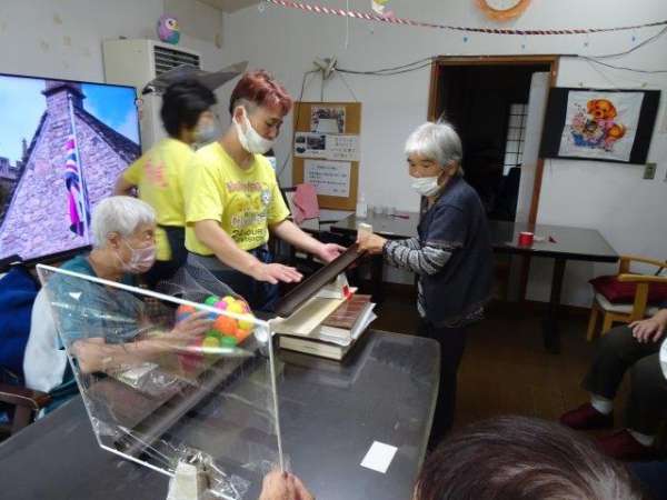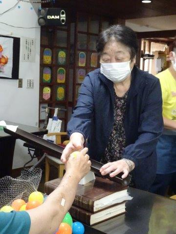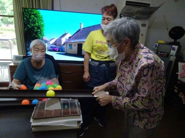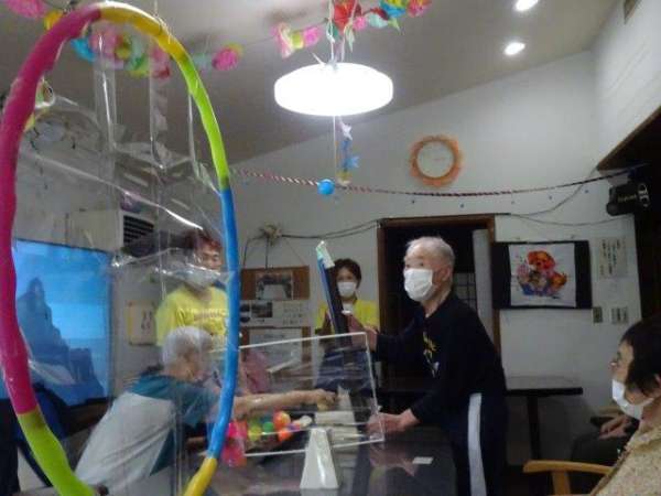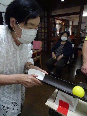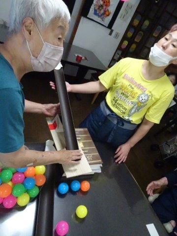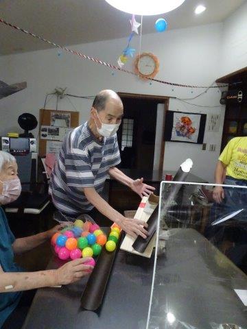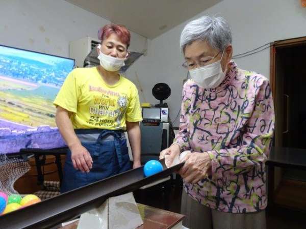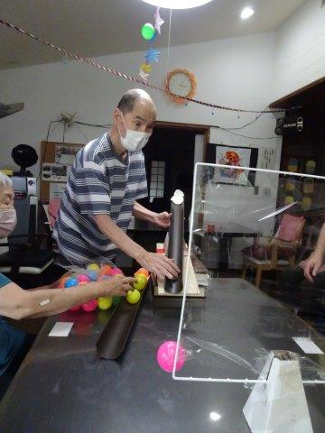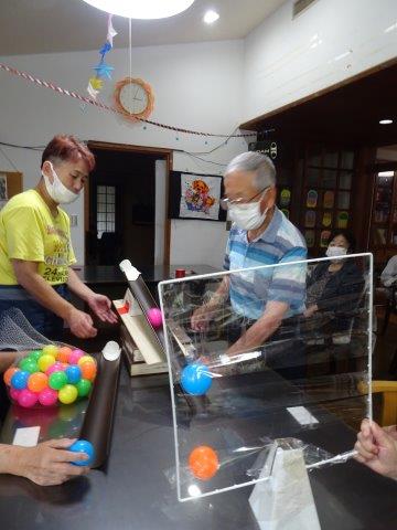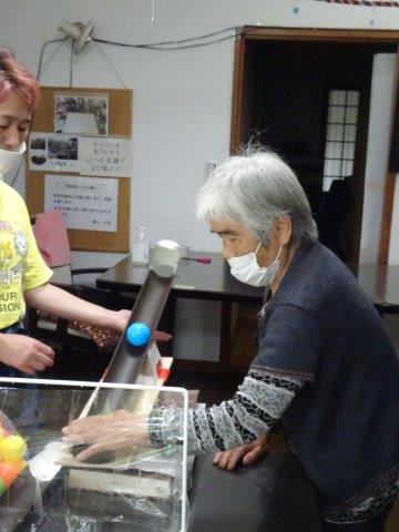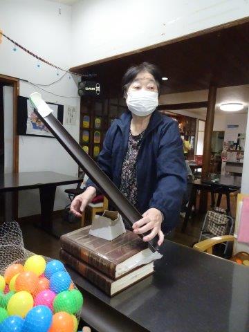 お母さんには、ボールが落ちないようにせき止めを作って頂きました