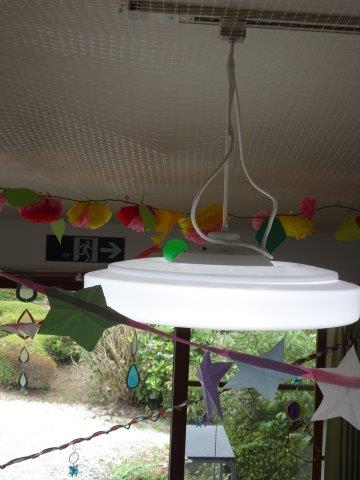 電気の傘の上に飛びそのまま止まって落ちてきませんでした