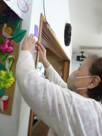 出来たハートは、お母様の手により、あちこちに貼られました