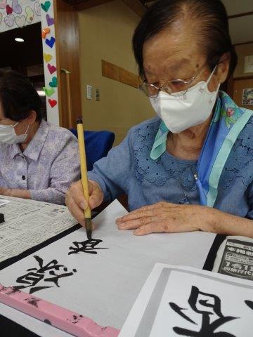 午後のレクリエーションでは、久しぶりの書道をしました。