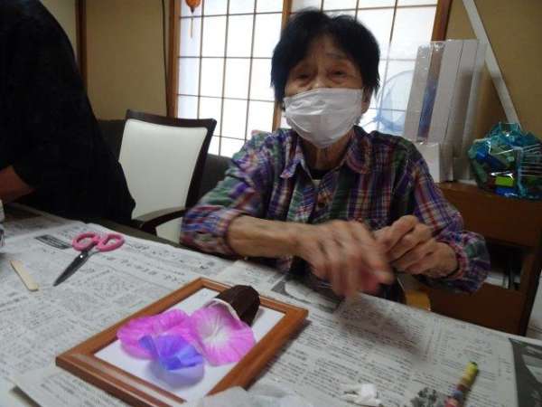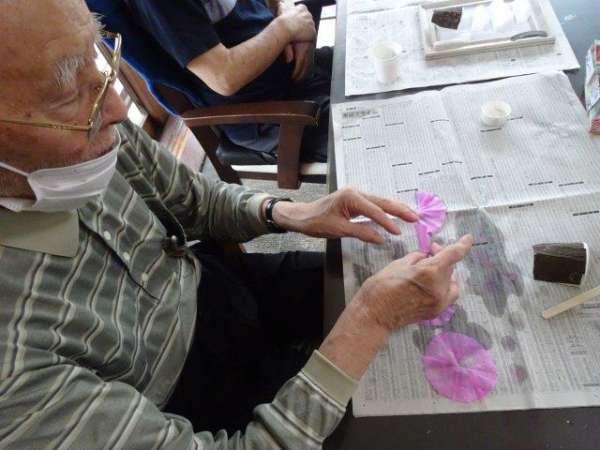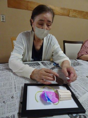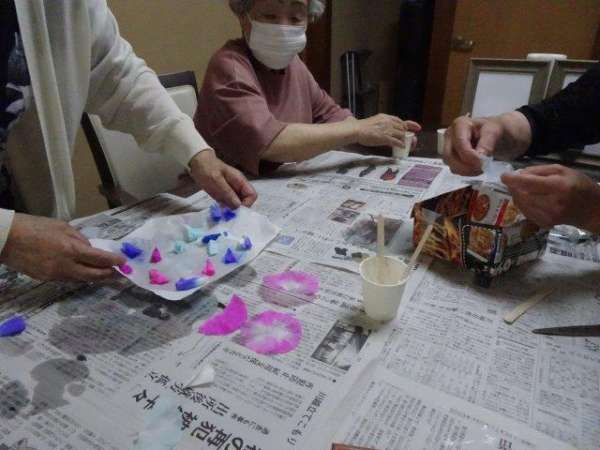 広げてみると、色とりどりの朝顔が出来上がりました(^_-)-☆