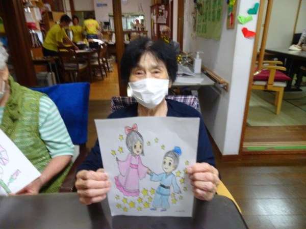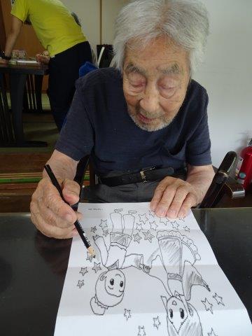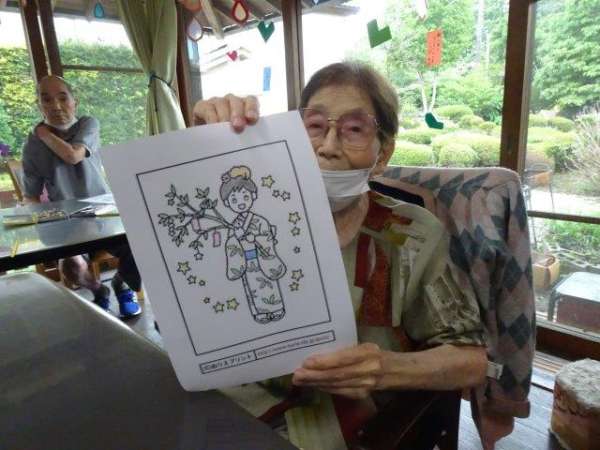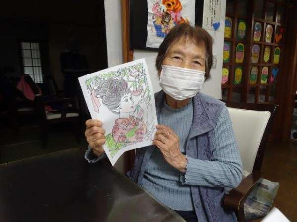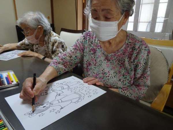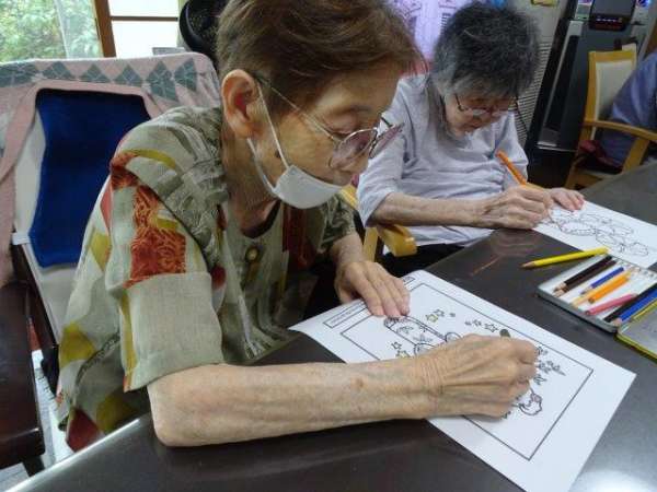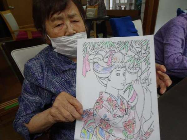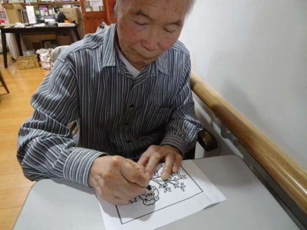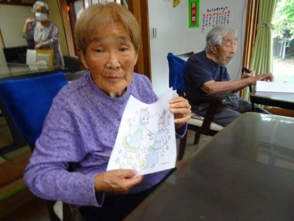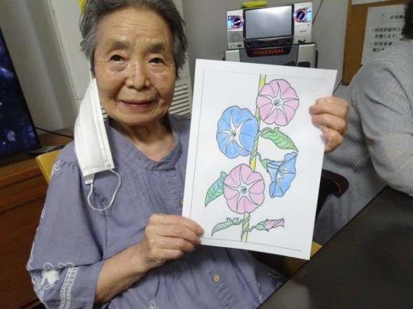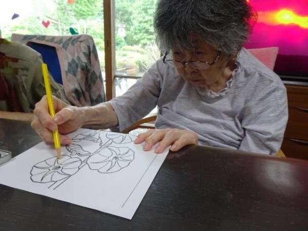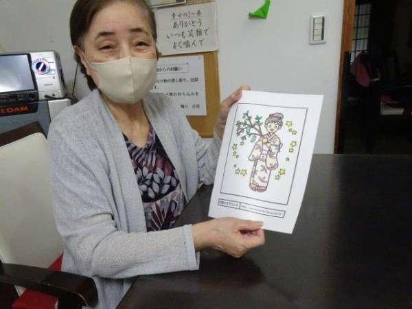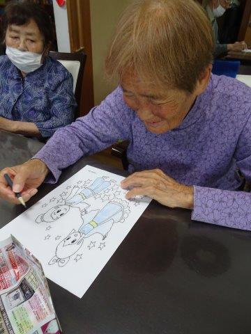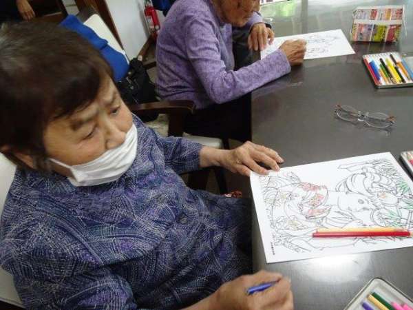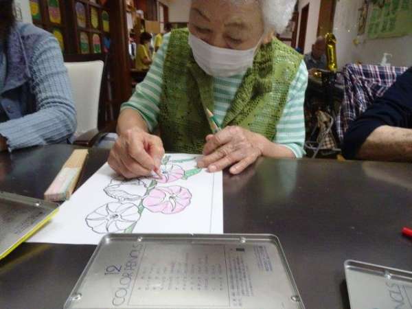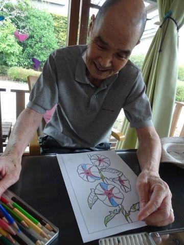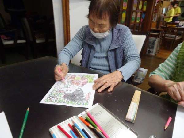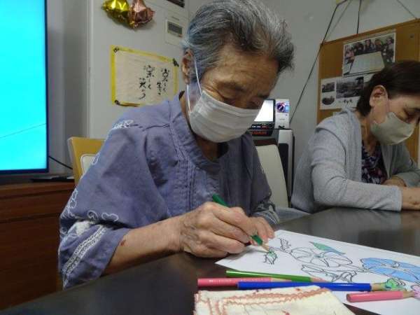 今日は、新しいスタッフの自己紹介に美味しいお昼に手指を動かした塗り絵!